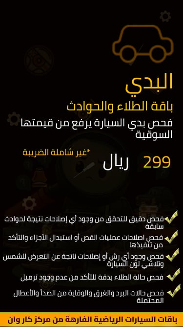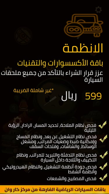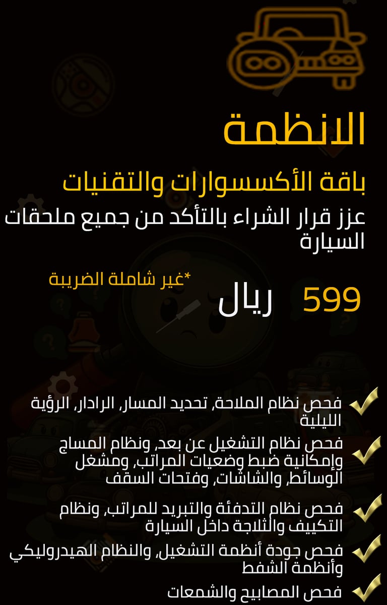 -فحص نظام الكهرباء والتوصيلات والحساسات في السيارة بهدف تجنب الأعطال الكهربائية والحد من مخاطر الحوادث الكهربائية والتأكد من خلو المركبة من الأعطال البرمجية.