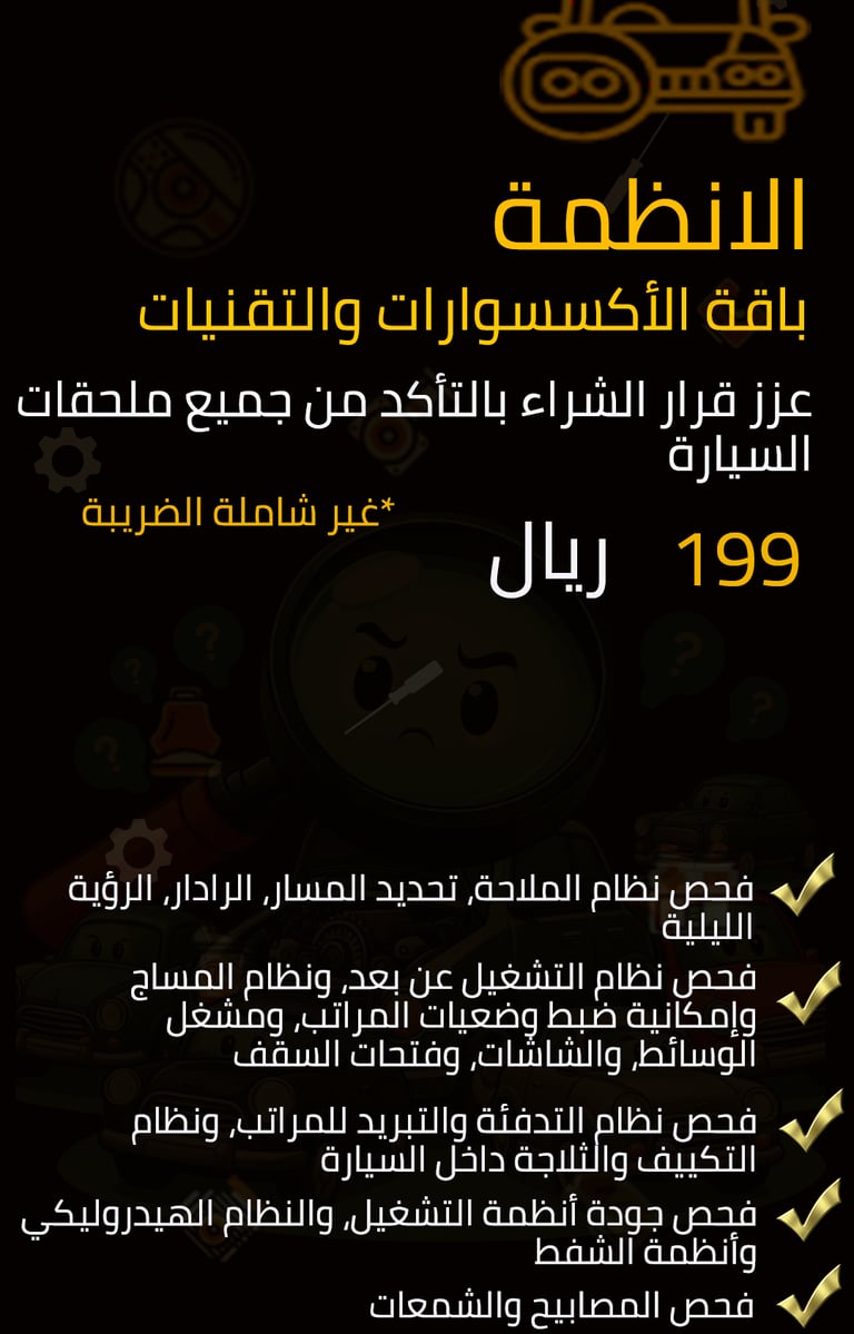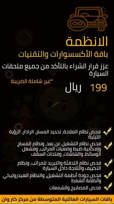 - Checking the electrical system, connections and sensors in the car in order to avoid electrical malfunctions, reduce the risk of electrical accidents and ensure that the vehicle is free of software malfunctions.